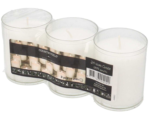 Countryfield Theelicht hoog 24uur 6,5x5cm set 3 stuks