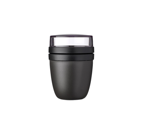 Lunchpot Ellipse in de kleur Nordic black. Deze zwart Ellipse lunchpot van Mepal is één handig product om je lunch of tussendoortje mee te nemen, maar heeft twee verschillende compartimenten om de verschillende ingrediënten gescheiden te houden.