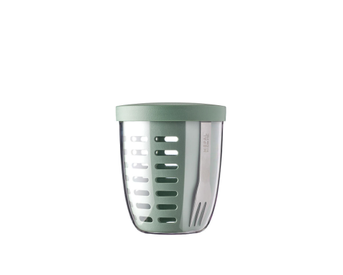 Snack gezond en neem je fruit en groente eenvoudig mee in de fruit- en veggiepot. Voorzien van slim vergietje, zodat jouw lekkers ter plekke afgespoeld kan worden. Een stijlvol RVS vorkje wordt ook meegeleverd!