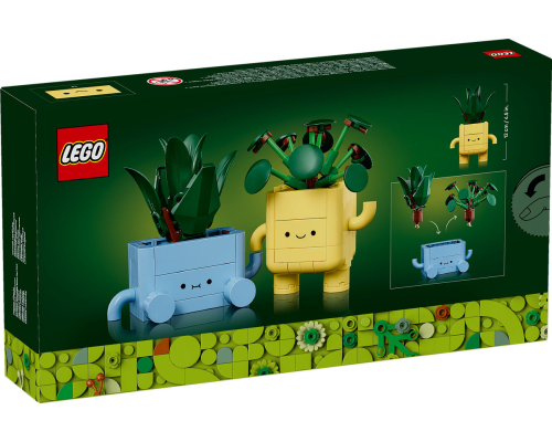 Wil je een glimlach op ieder gezicht toveren? Creëer geweldige plantendecoraties met de LEGO Botanicals Vrolijke plantjes bouwset. Geniet van het in elkaar zetten van de kleine drakenbloedboom in een gele plantenpot en de kleine pannenkoekplant in een bla