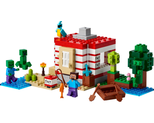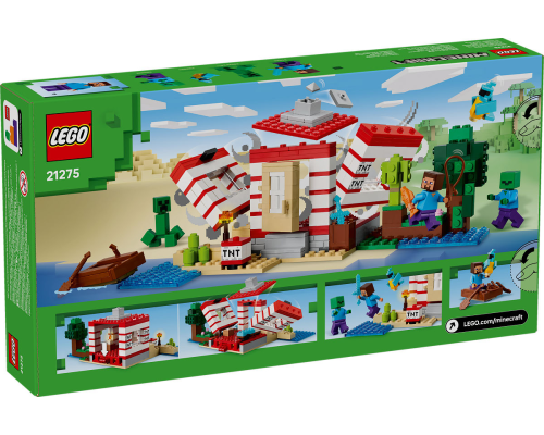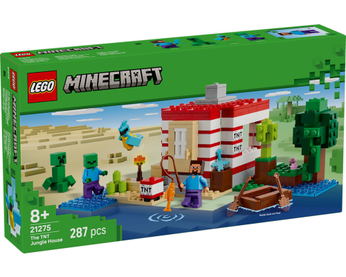 Diep in het junglebioom vind je dit geweldige TNT-vormige huis, waar je kunt relaxen, vissen en spelen met de vriendelijke papegaai. Maar pas op: er liggen een Creeper en zombie op de loer en ze zijn klaar om aan te vallen! Activeer een explosie om het he