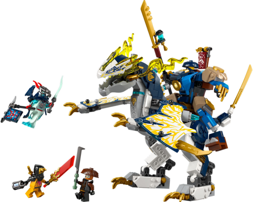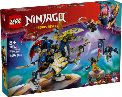De leider van de Verboden Vijf, Rox, en een Draconische geeststrijder zijn de Versmolten Landen binnengevallen. Bundel je krachten met Arin en Rogue om terug te vechten! Bevestig Rogue's mecha aan de achterkant van de allereerste NINJAGO robotdraak om een