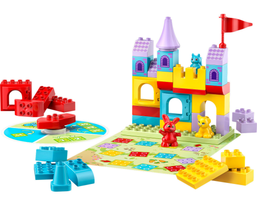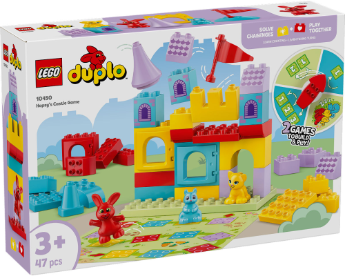 Beleef urenlang plezier met je peuter met dit 2-in-1 bordspel dat je kind ondersteunt bij het leren over getallen, kleuren en dingen om de beurt doen. In het eerste spel moeten peuters een kasteel bouwen voor Hopsy en haar vriendjes voordat ze thuiskomen.