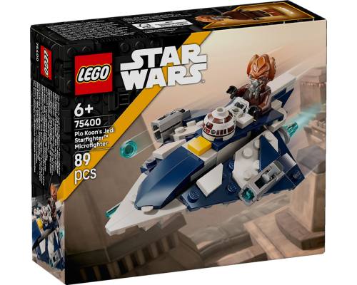 Ga met Plo Koon op avontuur in de eerste LEGO Star Wars Jedi Starfighter microfighter! Het model heeft de kleuren van Plo Koon, net zoals in Star Wars: The Clone Wars. Begroet de trouwe droid R7-D4, berg het blauwe lichtzwaard van de Jedimeester op en spr