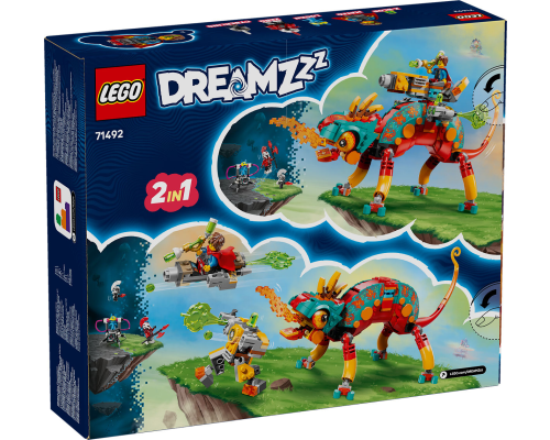 De schurk Zero en zijn Cyberwezen hebben Logan gevangengenomen en stelen zijn fantasie! Help Mateo en Z-Blob om hem te redden met deze LEGO DREAMZzz bouwset. Bouw een coole kameleon voordat je hem verandert in een vuurkameleon met een blasterkoepel op zij