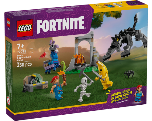 Bouw je eigen avontuur met deze LEGO Fortnite Peely en Sparkplugs kamp speelset, die is geïnspireerd op de eerste uitdagingen die je tegenkomt in de LEGO Fortnite Odyssey videogame. Je zult veel coole details herkennen! Geniet van het bouwen van de werkba