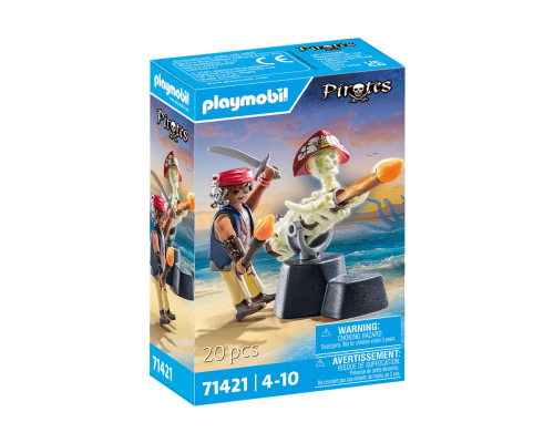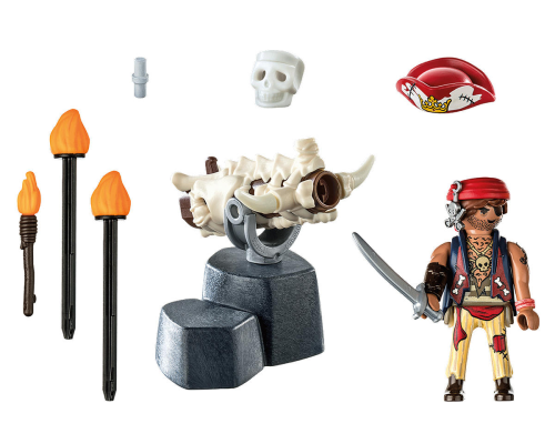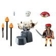 Het roterende en draaibare skeletten kanon van de piratenschutter is klaar om te vuren en mist nooit zijn doel. Inclusief skeletelementen die oplichten in het donker.