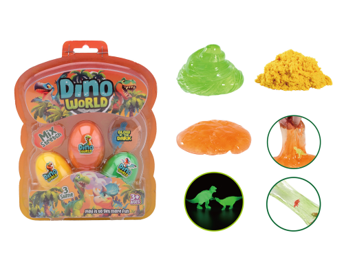 Dino World - 3 slijm eieren met glow in the dark dino op kaa