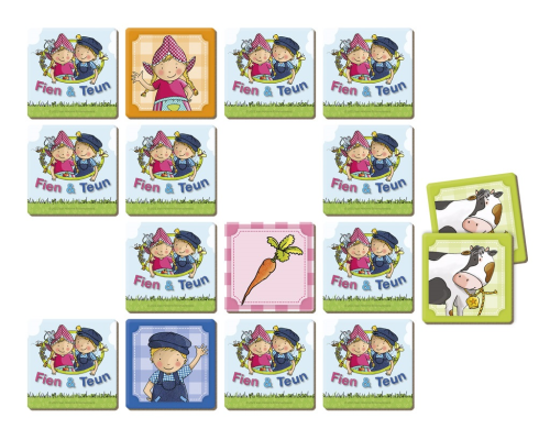 Op de kaartjes staan afbeeldingen van Fien, Teun, boerderijdieren, fruit en nog veel meer.