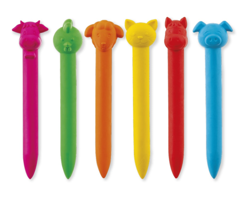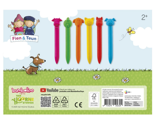 Zin om te kleuren? Met de Fien & Teun Waskrijtjes maak je de mooiste tekeningen. Deze set bevat 5 waskrijtjes, met het hoofd van een boerderijdier zoals een varken, hond, kat, paard of schaap.