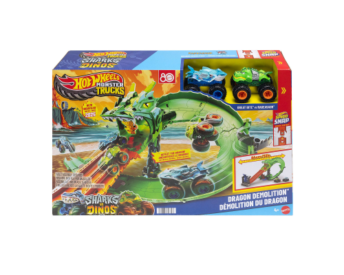 Hot Wheels Monster Trucks Sharks vs Dinos Dragon Destruction