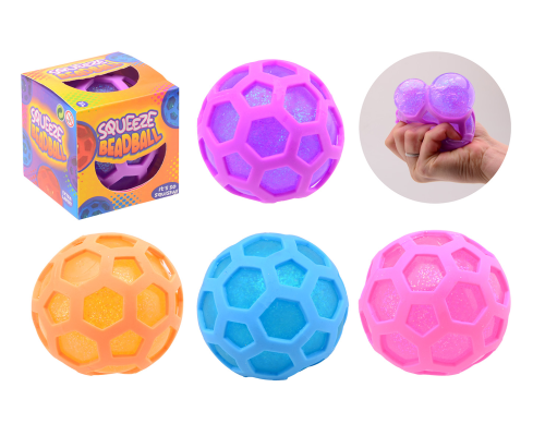 Glitter squeeze zeshoek bal in doos 4 assorti