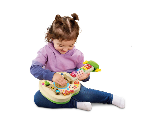 Beweeg de snaren en druk op de knipperende toetsen om muziek te maken én om kennis te maken met cijfers, kleuren, dierengeluiden en verschillende muziekstijlen. Kies uit drie instrumenten en speelstanden om je muzikale creativiteit te ontwikkelen en bewee