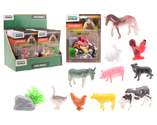 Animal World - Boerderij dieren speelset 12-delig op kaart