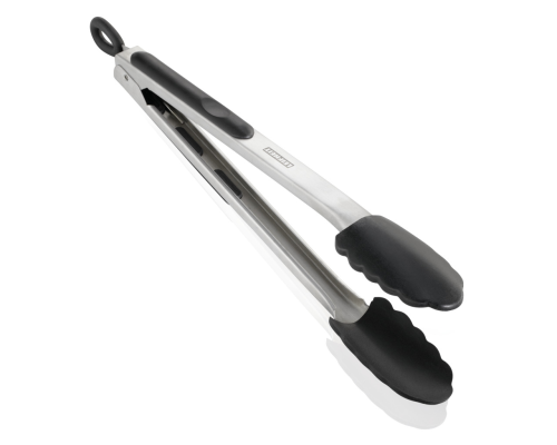 Openen en vergrendelen met één klik. Dankzij het nieuwe vastzetmechanisme bedien je de Leifheit keuken- en barbecuetang gemakkelijk met één hand. De kop van hittebestendig nylon is geschikt voor kwetsbare pannen met antiaanbaklaag. Stevige greep van roest