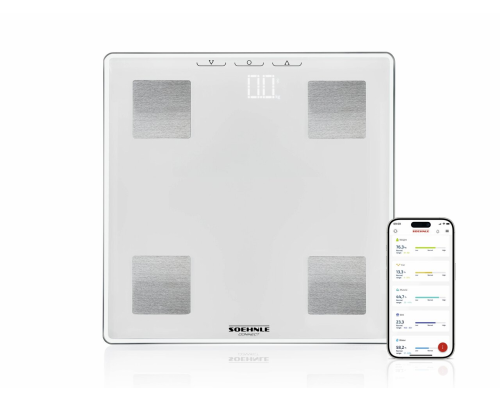 Lichaamsanalyseweegschaal Shape Sense Connect Lite van Soehnle: combinatie van gebruikersgemak en bewezen Soehnle-kwaliteit, voor een zacht prijsje. Met bio-impedantieanalyse wordt behalve je gewicht ook vetpercentage, watergehalte en spiermassa gemeten.