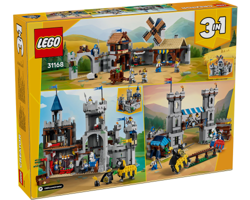 Kinderen spelen actie na met dit LEGO Creator 3in1 Middeleeuws kasteel dat kan worden omgebouwd tot een set met ridderspelen of een middeleeuws dorp.