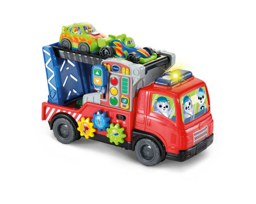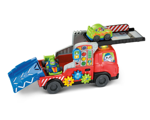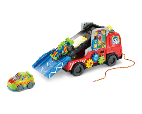 Laad de auto's op, repareer ze en laat ze van de helling racen! Druk op de tandwielen om kennis te maken met verschillende gereedschappen en plaats een auto op het herkenningspunt om vrolijke reacties te horen. Gebruik het trekkoord om de vrachtwagen over