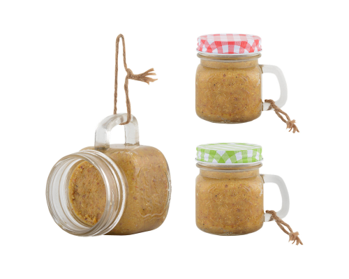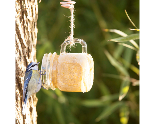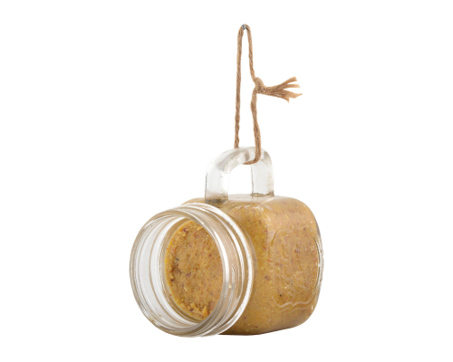 Een kant en klare oplossing voor het voeren van vogels in de tuin is deze mok gevuld met pindakaas. De pindakaas is speciaal voor vogels samengesteld en bevat geen zout wat schadelijk is voor dieren. Hang de mok eenvoudig op middels het meegeleverde jutet