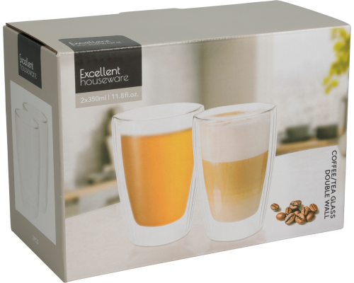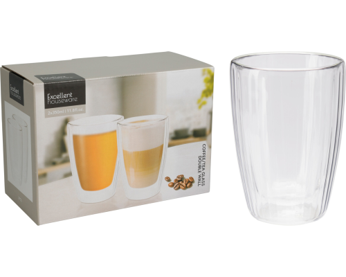 Dubbelwandig Koffie-Theeglas 350ml set 2 stuks in doos