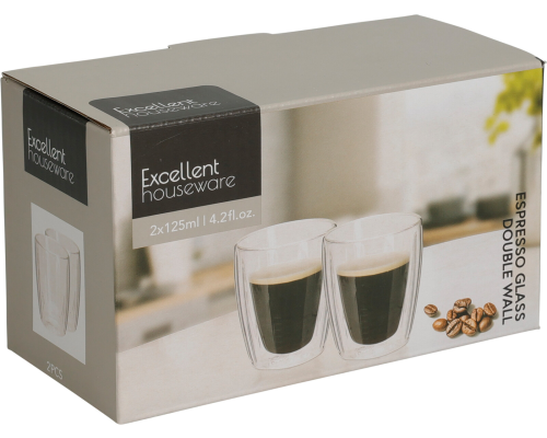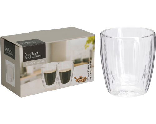 Dubbelwandig Koffie-Theeglas 125ml set 2 stuks in doos