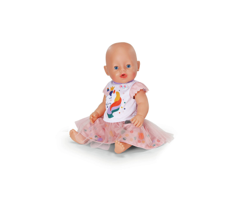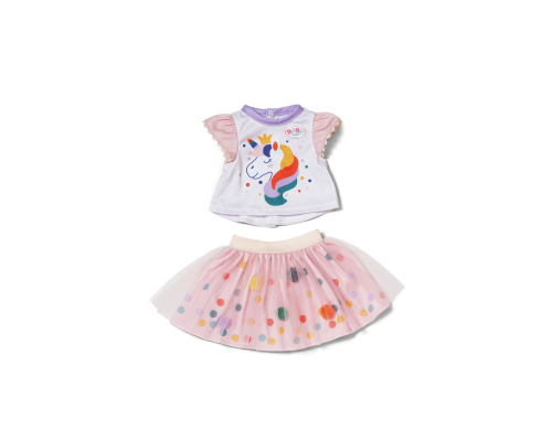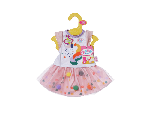 Deze tweedelige eenhoornjurk met tutu met kleurrijke confettipompons is een vrolijke aanvulling op elke poppengarderobe.