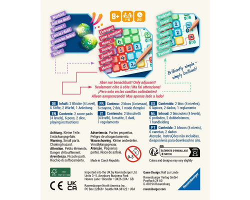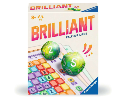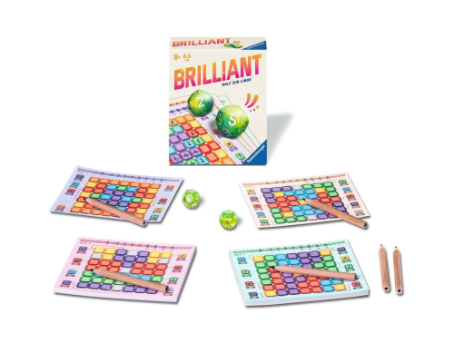 Pak de diamanten! En het liefst voor de anderen!Iedereen speelt tegelijkertijd en het is briljant eenvoudig en eenvoudig briljant!In BRILLIANT is het jouw doel om zo snel mogelijk de velden op je scoreblad met getallen te vullen en daarmee het aantal punt