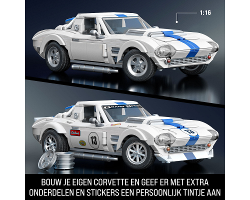 Minder dan 130 modellen zagen het daglicht... maar jij kunt 'm nu bouwen. Bouw zelf de Corvette Grand Sport (schaal 1:16) van Mattel Brick Shop. Deze gedetailleerde en authentieke set bevat extra onderdelen die je naar eigen inzicht kunt gebruiken, metale
