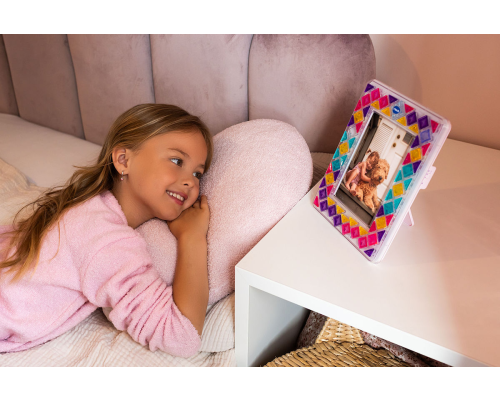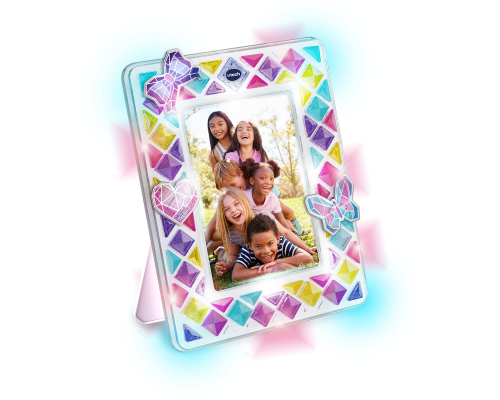Laat je creativiteit de vrije loop met het Mosaic Magisch Lights Fotolijstje! Creëer je eigen unieke fotolijstje met meer dan 70 kleurrijke mozaïeksteentjes! Plaats je favoriete foto in het frame en verschuif de schakelaar om muziek te horen en toffe lich