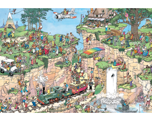 Een uitdagendere golfbaan ga je niet vinden! Wie manoeuvreert zich het slimst langs de obstakels en weet misschien zelfs een hole - in - one te slaan? Deze komische plaat van Jan uit 2008 is nu verkrijgbaar als legpuzzel van maar liefst 5000 stukjes. Een Jan van Haasteren puzzel is meer dan een gewone legpuzzel: het is een avonturenserie, met vertrouwde hoofdrolspelers in een eindeloos decor vol absurde details. Ontdek alle doldwaze avonturen van de Jan van Haasteren - familie! We zijn trots dat onze puzzels zijn gemaakt van gerecycled karton in Europa. Om het karton in puzzelstukjes te snijden, gebruiken we het dunste mes dat er is. De puzzel ziet er bijna naadloos uit als hij klaar is. Geniet van deze Jan van Haasteren - puzzel!