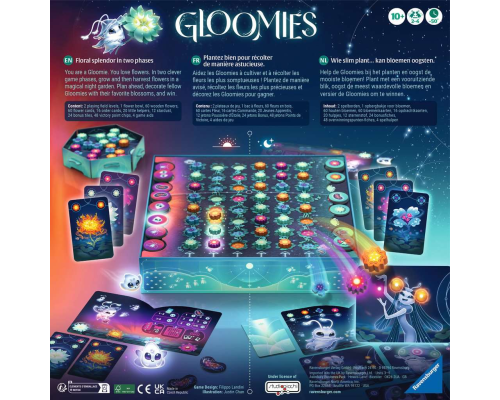 Fleur je spelletjesavond op met Gloomies! Help de Gloomies bij het planten en oogst de mooiste bloemen! Plant met een vooruitziende blik, oogst de meest waardevolle bloemen en versier de Gloomies om te winnen.