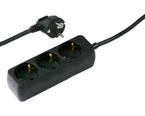 Praktische stekkerdoos met 3 stopcontacten en 1,5 meter snoer. Ideaal voor thuis of op kantoor.