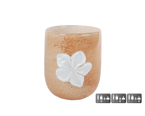 Vaas Imogen M met bloem terra/wit glas 12x12x14,5cm