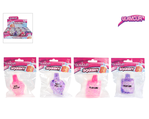 Glamour Squishy knijpflesje parfum/nagellak 2ass kleur 7cm