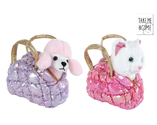 Take Me Home pluche hond of poes in tasje 2ass 20cm