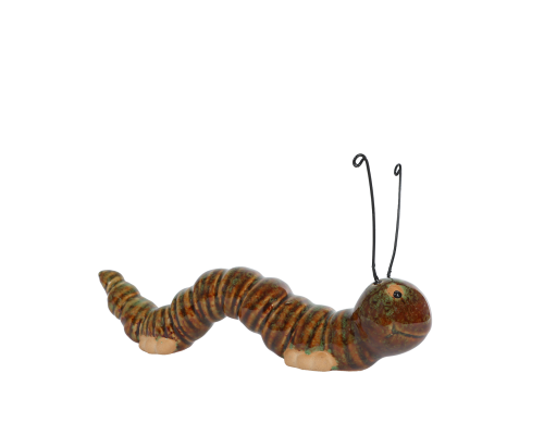 Sculptuur Caterpillar S bruin/groen aardew 15x3,5x6cm