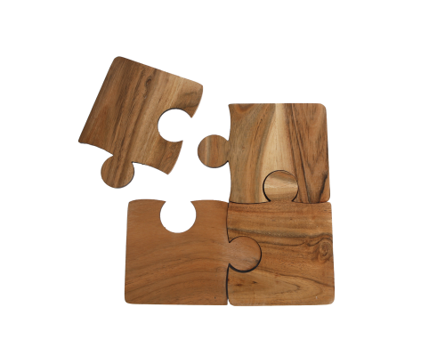 Onderzetter Puzzle naturel acacia 10x13x0,6cm 4 stuks