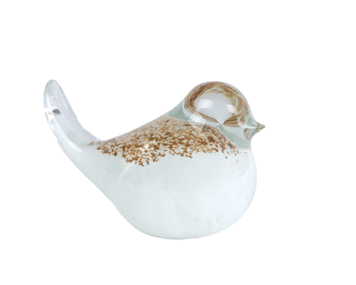 Sculptuur Bird wit/goud glas 11x6x7,5cm