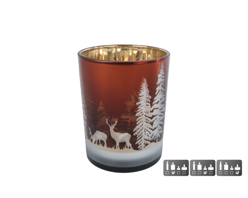 Theelichthhouder Hert/Dennenboom M bruin glas 10x10x12,5cm