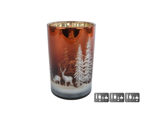 Theelichthouder Hert/Dennenboom L bruin glas 12x12x18cm
