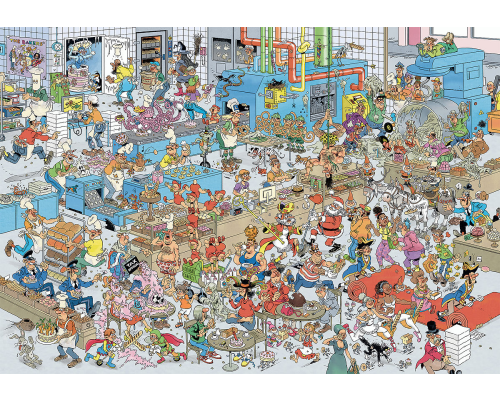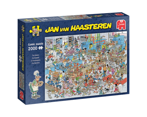 Brood, gebak en koekjes, allemaal specialiteiten van Jan van Haasteren's Bakkerij. Octo is een ware productiekampioen, en Jan heeft een wel heel slimme manier gevonden om spookkoekjes te maken. Terwijl Sinterklaas en de Kerstman niet op hun beurt kunnen wachten. Deze specialiteiten moeten wel buitengewoon lekker zijn! Een Jan van Haasteren puzzel is meer dan een gewone legpuzzel: het is een avonturenserie, met vertrouwde hoofdrolspelers in een eindeloos decor vol absurde details. Ontdek alle doldwaze avonturen van de Jan van Haasteren - familie! We zijn trots dat onze puzzels zijn gemaakt van gerecycled karton in Europa. Om het karton in puzzelstukjes te snijden, gebruiken we het dunste mes dat er is. De puzzel ziet er bijna naadloos uit als hij klaar is. Geniet van deze Jan van Haasteren - puzzel!