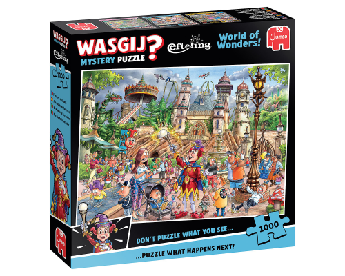 Een bezoek aan de Efteling maakt ons allemaal weer even kind. Met betoverende attracties, sprookjesfiguren en achtbanen waarin je de longen uit het lijf schreeuwt. Maar nog niet alle bezoekers lijken de magie te hebben gevonden in de Wereld vol Wonderen. Kan Pardoes daar verandering in brengen? Wat gebeurt er als Pardoes met de magische twinkeltoorts zwaait? Dat beeld ga je puzzelen! Kenmerken: - Legpuzzel van 1000 stukjes voor volwassenen - Puzzel niet de afbeelding van de doos, maar gebruik je verbeelding om de Wasgij oplossing bij elkaar te puzzelen! - Afmeting gelegde puzzel: 68 x 49 cm Over Wasgij Deze Wasgij legpuzzels van Jumbo zijn speciaal ontwikkelt voor volwassenen. Anders dan bij andere puzzels, maak je bij Wasgij niet een afbeelding van de doos na maar moet je zelf je fantasie gebruiken om de puzzelplaat compleet te maken! Er zijn drie verschillende concepten: Original, Mystery en Destiny. Bij Wasgij Mystery moet je de hints en je fantasie gebruiken om er achter te komen hoe het tafereel er in de toekomst uit zal zien. Het unieke Wasgij concept stimuleert volwassenen om hun fantasie te gebruiken!