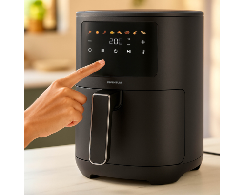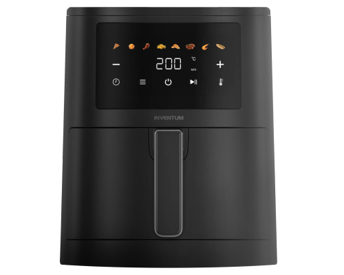 Bak de lekkerste frites en snacks, bijna zonder olie of vet, met de Inventum airfryer GF351HLDB! Je kunt met deze hetelucht friteuse behalve frituren ook grillen, roosteren en bakken. Dit apparaat heeft een inhoud van 3,5 liter en daarmee kun je ongeveer 800 gram frites tegelijk bakken. De optimale hoeveelheid is 500 gram. Het apparaat is eenvoudig te bedienen met tiptoetsen. Kies op het overzichtelijke digitale kleurendisplay 1 van de 8 automatische programma's of stel zelf de temperatuur en de baktijd in. Tijdens het bakken kun je de resterende tijd zien op het display. Deze airfryer is gemakkelijk schoon te maken. Je kunt de pan en het rooster met anti-aanbaklaag gewoon in de vaatwasser zetten.