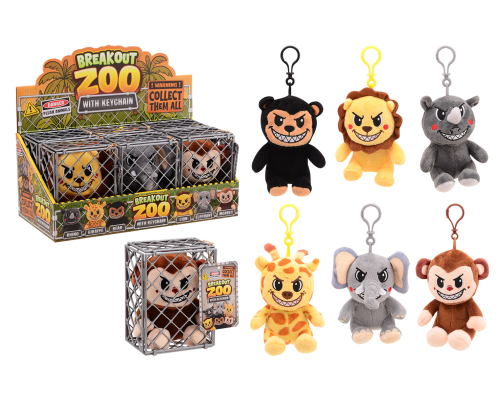 BREAK OUT ZOO - Pluche dieren in kooi 6 assorti