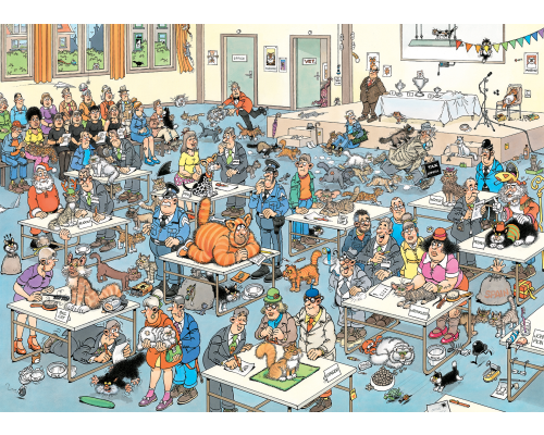Bij de Kattenshow draait alles om het pronken met mooie katten. Maar zijn alle deelnemers echt katten of zijn er ook valsspelers? De juryleden hebben het moeilijk om hun winnaars te selecteren met alle chaos om hen heen. En zie jij de originele kat uit de familie Jan van Haasteren? Een Jan van Haasteren puzzel is meer dan een gewone legpuzzel: het is een avonturenserie, met vertrouwde hoofdrolspelers in een eindeloos decor vol absurde details. Ontdek alle doldwaze avonturen van de Jan van Haasteren - familie! We zijn trots dat onze puzzels zijn gemaakt van gerecycled karton in Europa. Om het karton in puzzelstukjes te snijden, gebruiken we het dunste mes dat er is. De puzzel ziet er bijna naadloos uit als hij klaar is. Geniet van deze Jan van Haasteren - puzzel!