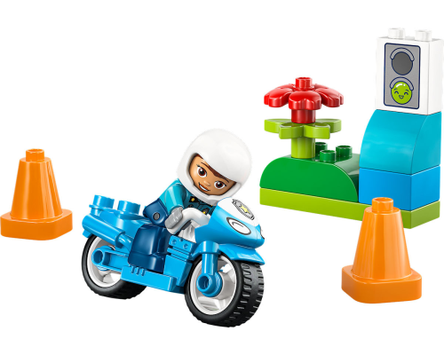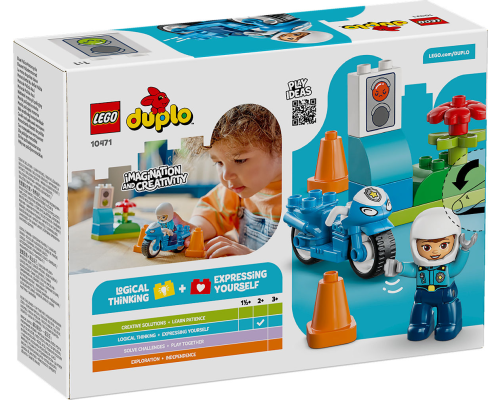 Laat peuters alledaagse helden worden door een coole LEGO DUPLO politiemotor te bouwen en op pad te gaan voor avonturen als verkeersagent.