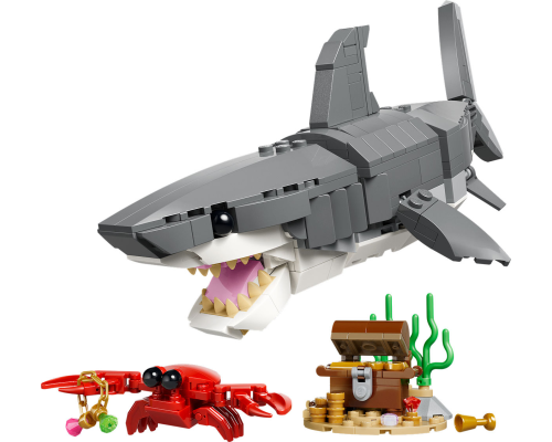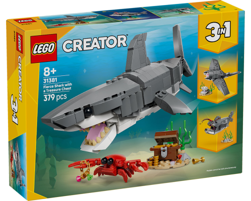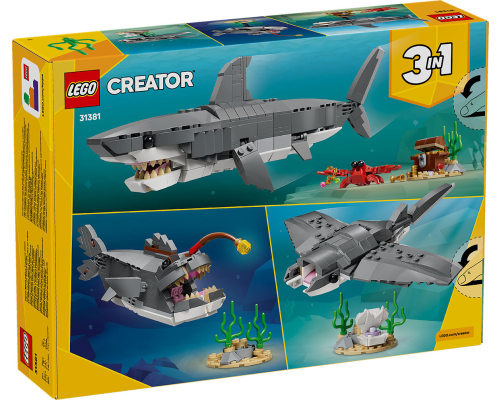 Kinderen kunnen genieten van verhalen met deze LEGO Creator 3in1 Woeste haai met schatkist en hem daarna ombouwen tot een lantaarnvis of mantarog.