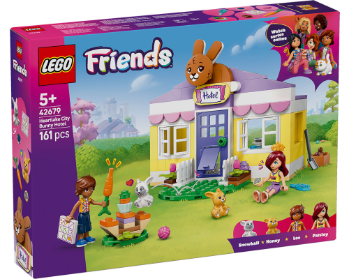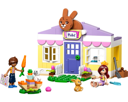 Fantasiespeelset met een konijnenhotel, 2 minipoppetjes, 2 konijntjes en veel leuke details om het vertellen van creatieve verhalen te stimuleren.