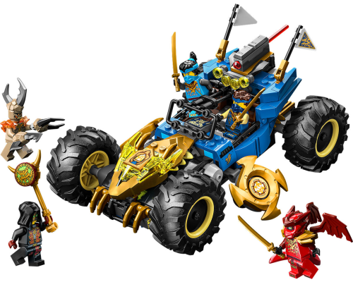 Speel de actie uit seizoen 4 van de tv-serie NINJAGO De Drakenstrijd na met LEGO NINJAGO Jay's transformerende auto inclusief 5 minifiguren.