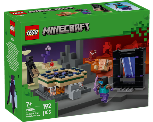 Maak een Reis naar de Nether en het End-portaal, waar kinderen 2 LEGO Minecraft portalen kunnen activeren om nieuwe biomen en avonturen te ontdekken.